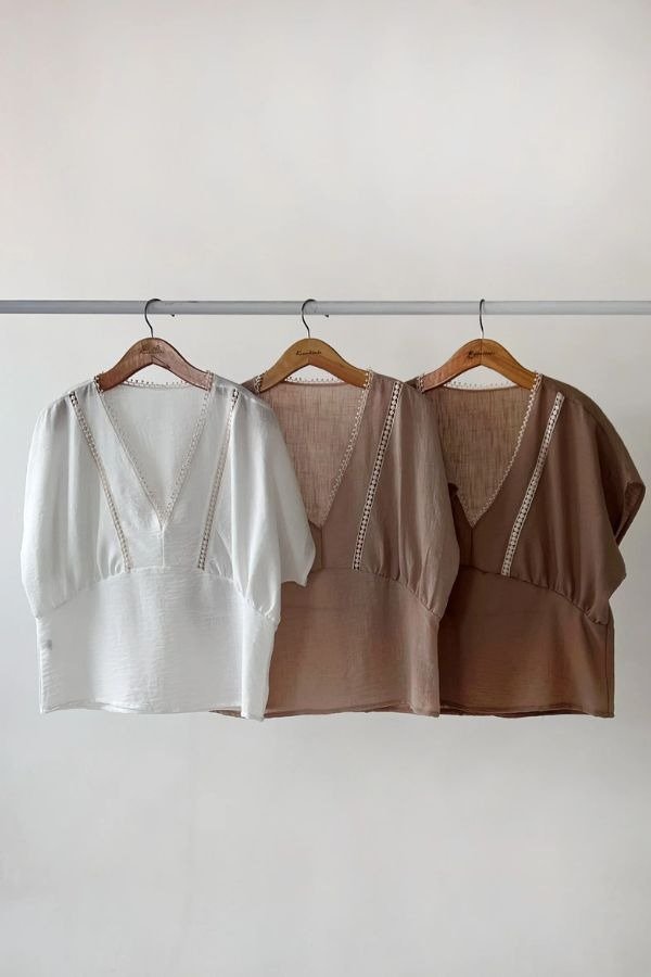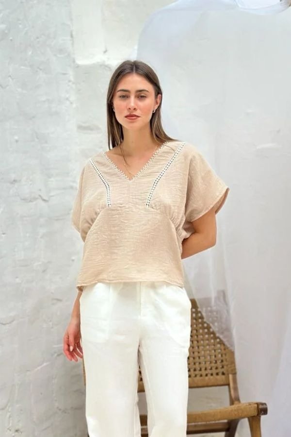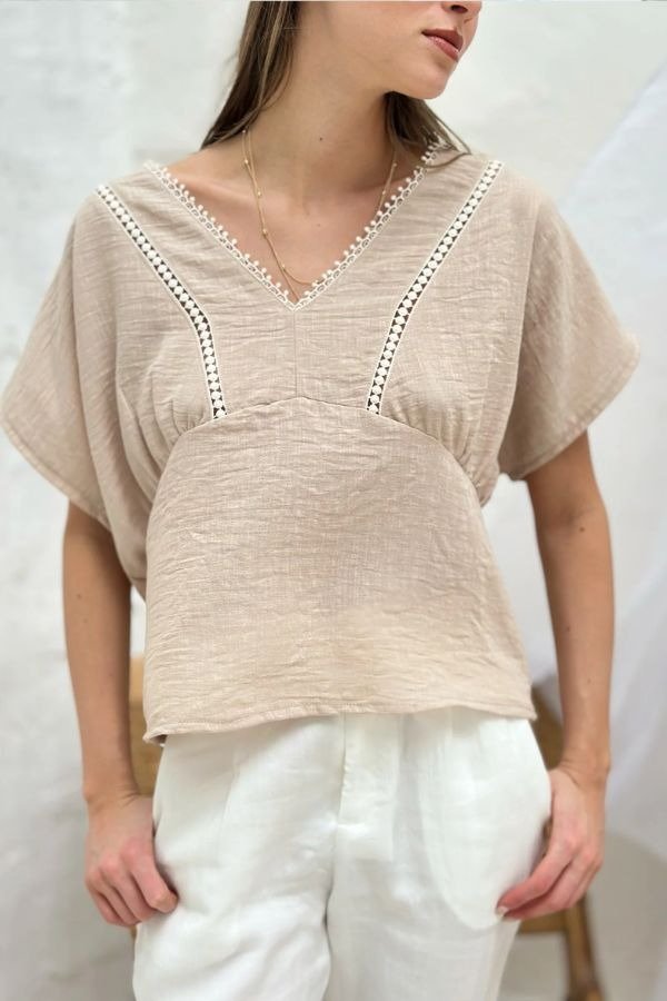Blusa de crepe siml lino con puntillas