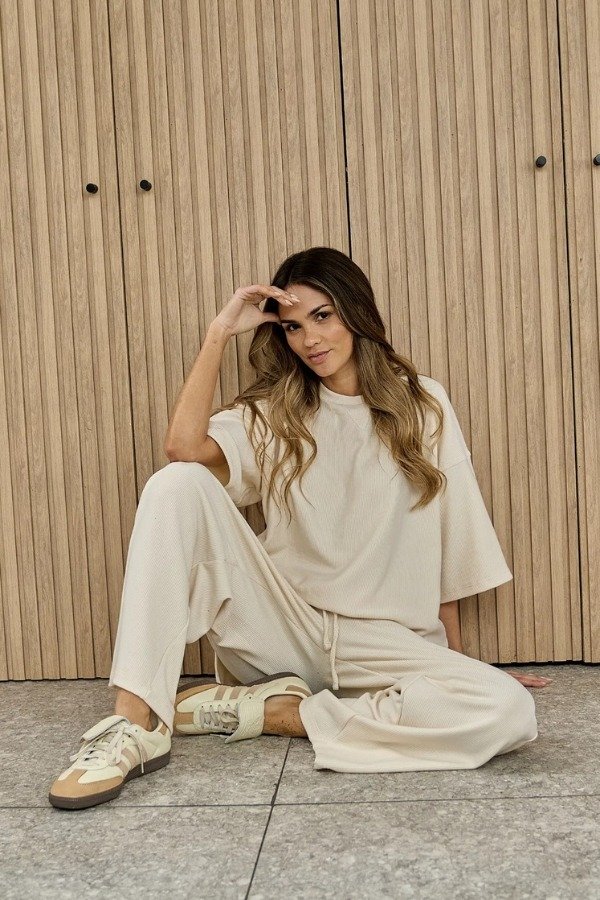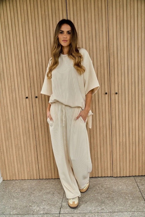 Pantalón confeccionado en morley de algodón, cintura con elástico y cordón a tono. Tiene bolsillos a los costados.