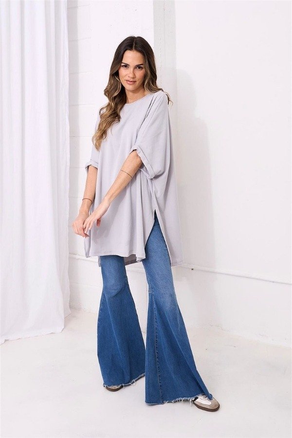 Remeron confeccionado en morley finito, modelo amplio con escote redondo y tajos a los costados